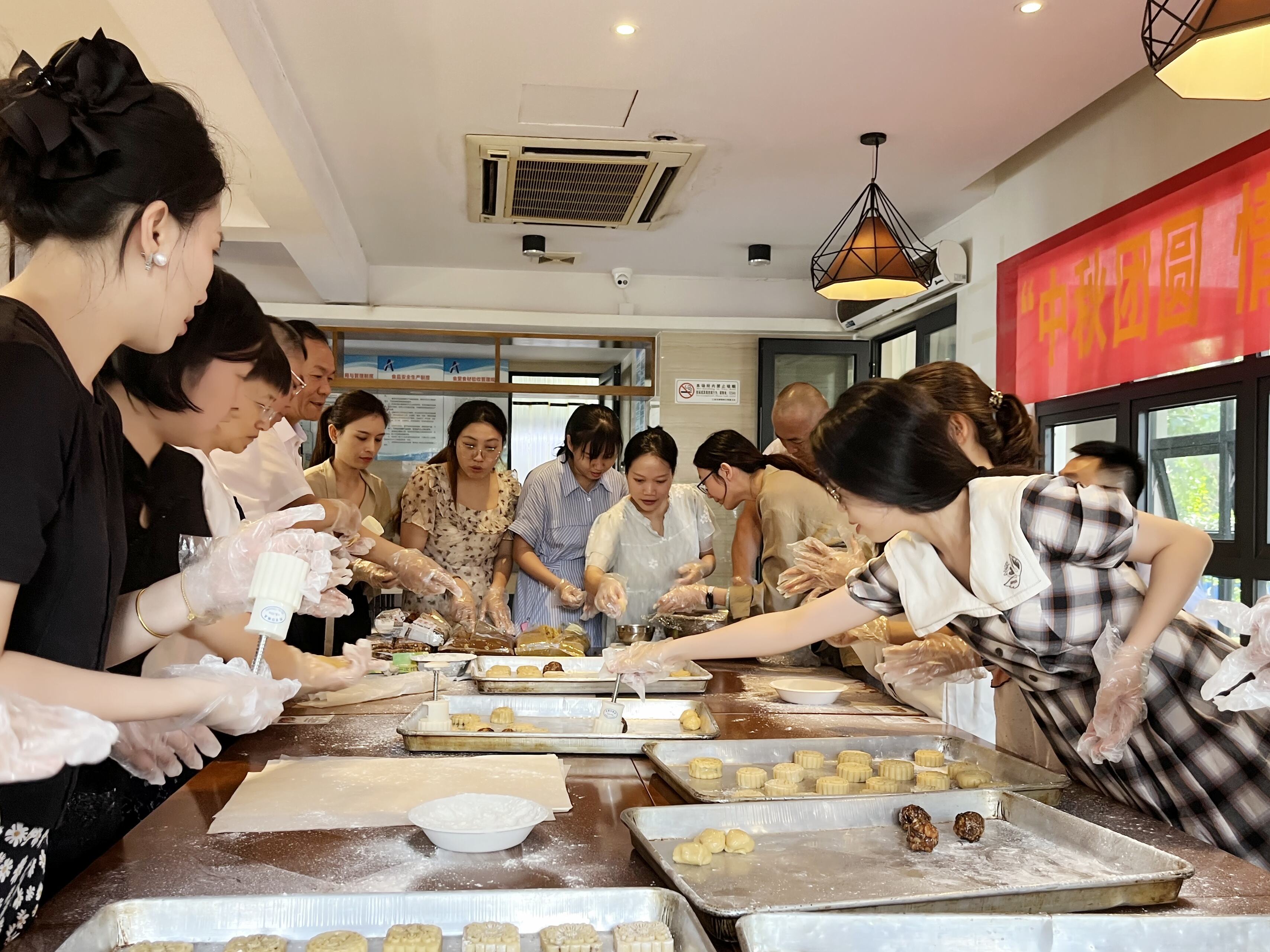 活動現場,團圓大家歡聚一堂,情滿跟著面點師傅的空管專業講解認真學習月餅的制作流程,揉面團、亞空包餡、管站壓膜,舉辦節月大家逐漸上手,愈發熟練。每個人都沉浸在歡樂的氣氛中,享受著親手制作美食的樂趣,當一個個充滿愛意的月餅在自己手中完成時,興奮之情和成就感洋溢臉上。在等待月餅出爐的間隙,站工會還組織大家進行“你說我猜”趣味游戲,現場充滿了歡聲笑語,氣氛和諧愉悅。熱騰騰的月餅出爐后,香味撲鼻,大家一起品嘗自己親手制作的月餅,感覺無比香甜。